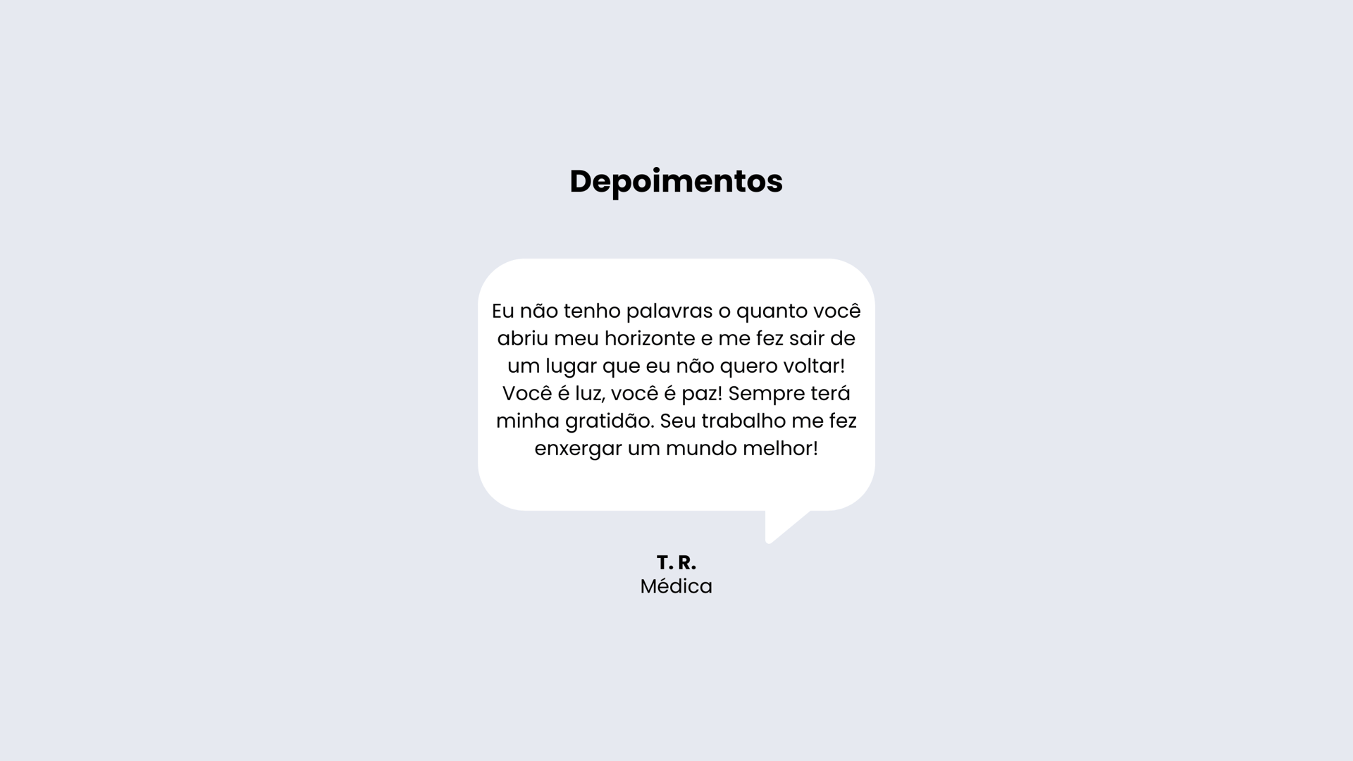 Nada me faz mais feliz do que acompanhar a evolução de cada pessoa que confia em mim. Se você quer começar uma nova fase e investir em você, estou aqui para ajudar. Vamos juntos? Entre em contato e agende sua primeira sessão!
