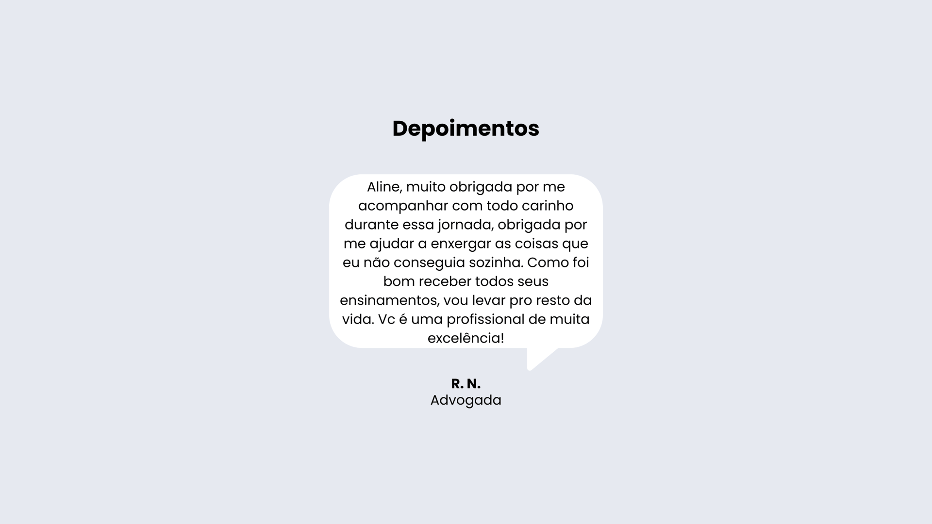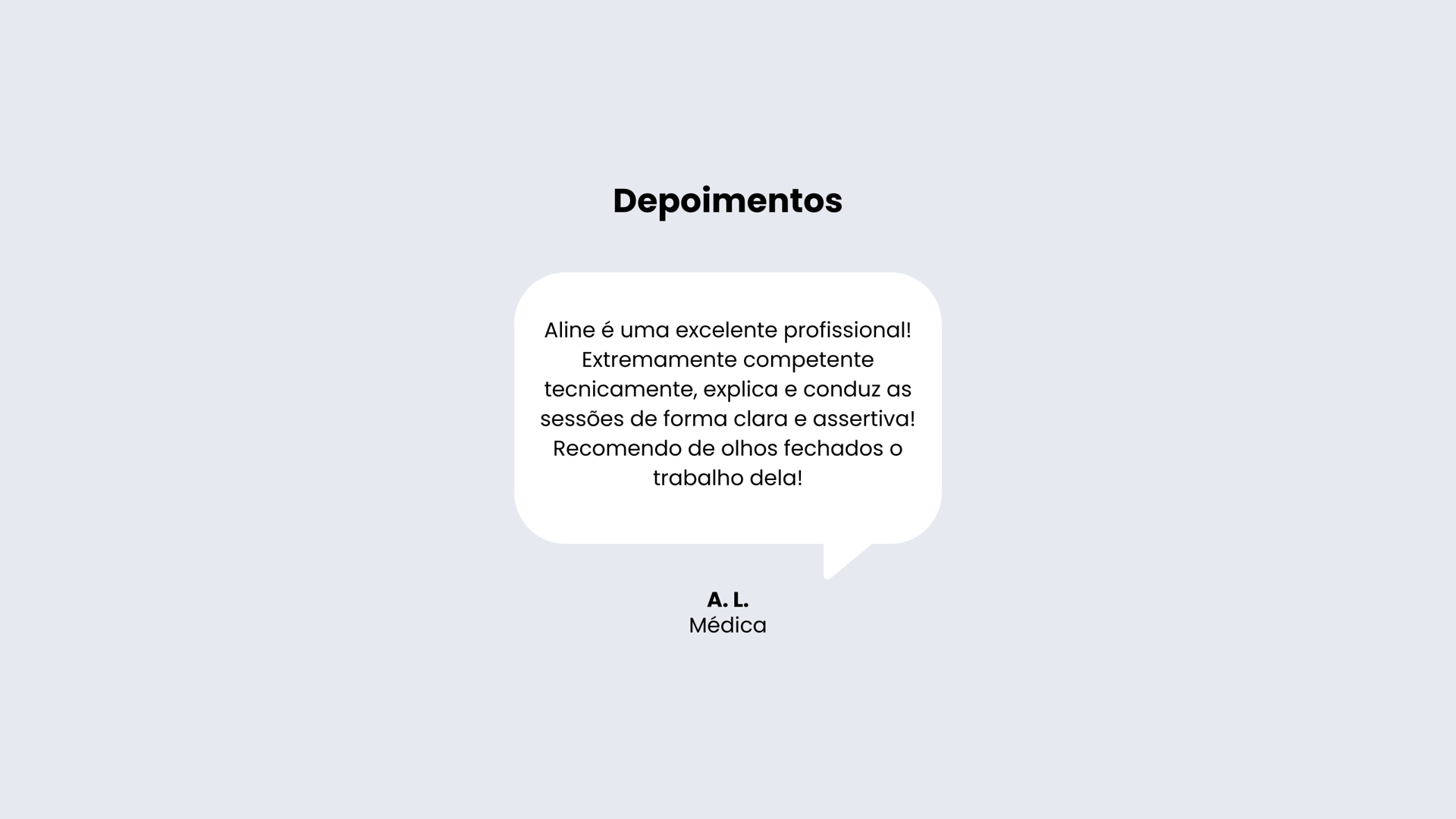 Meu nome é Aline, sou psicóloga (CRP 09/012935) com mais de 5 anos de experiência em atendimento clínico e utilizo a Terapia Cognitivo-Comportamental (TCC) como abordagem. Também sou especialista em Neurociências. Minha missão é ajudar você a ter mais qualidade de vida, superar desafios emocionais e alcançar seus objetivos, seja qual for o momento da sua jornada.